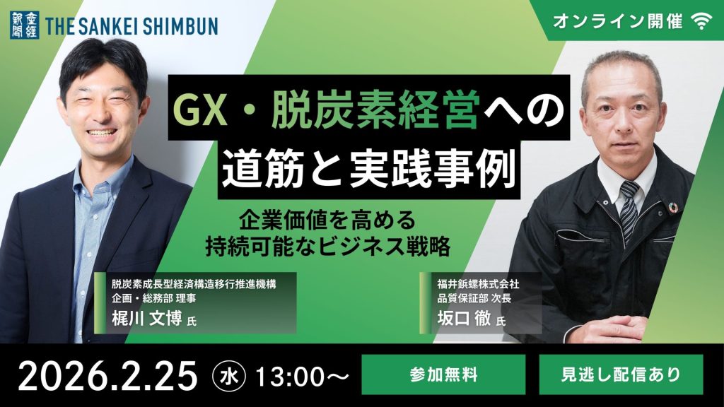 ESGテックの株式会社PID(ピーアイディー/本社:東京都港区、代表取締役:田子 智志、以下 「PID」)は、2026年2月25日(水)にオンラインで開催される産経新聞社主催のセミナー「GX・脱炭素経営への道筋と実践事例 ~企業価値を高める持続可能なビジネス戦略~」に、株式会社インターネットイニシアティブ(代表取締役 社長執行役員:谷脇 康彦、以下 IIJ)と共同で登壇いたします。